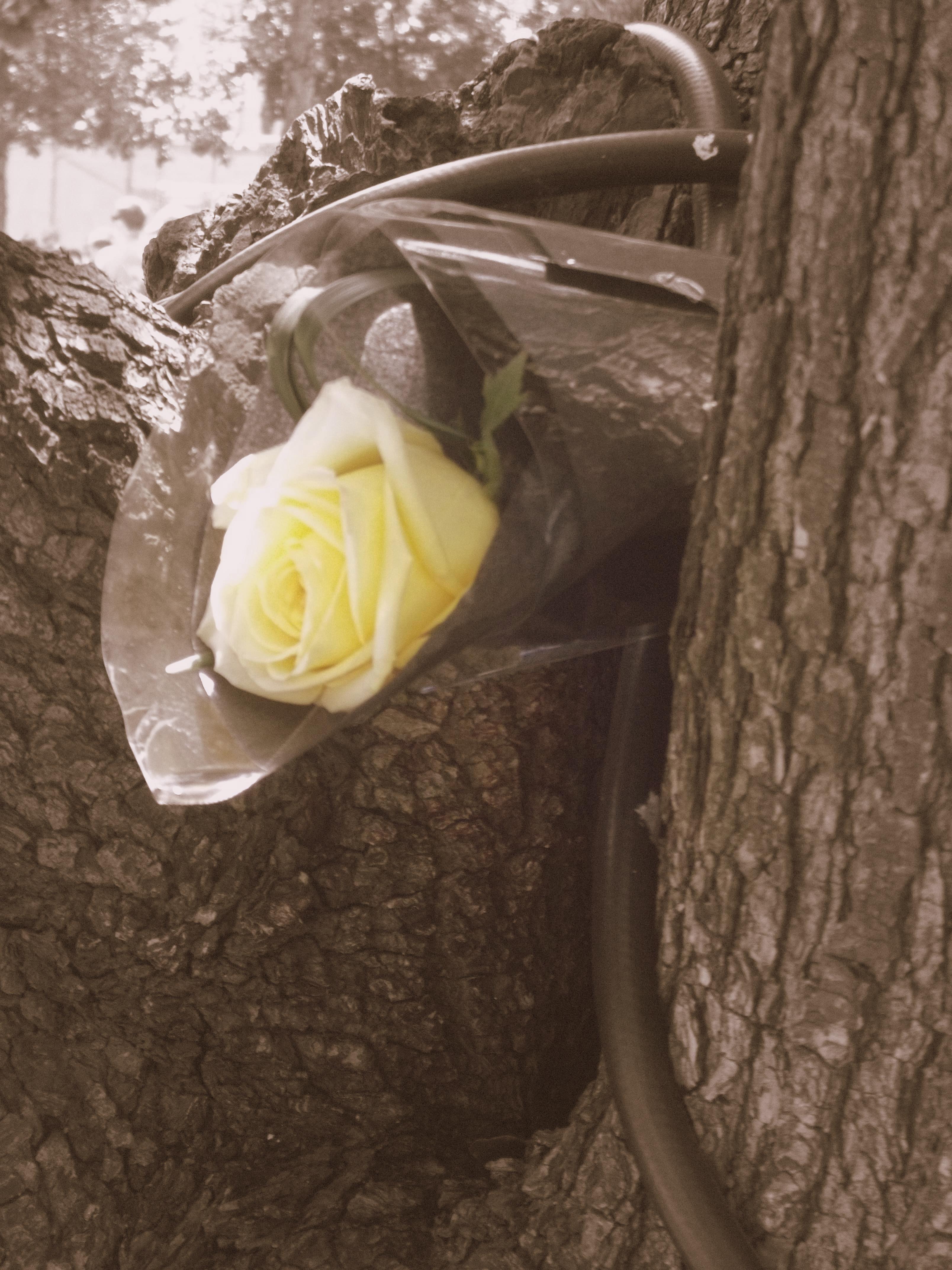 Saratoga, July 2012 18 Tuesday Dec 2012 Original size at 3216 × 4288 ≈ Leave a comment A yellow rose placed in the Survivor Tree that lived through the attacks on the site: proof to me that hope blooms in the most unexpected places