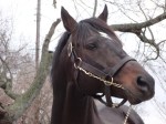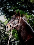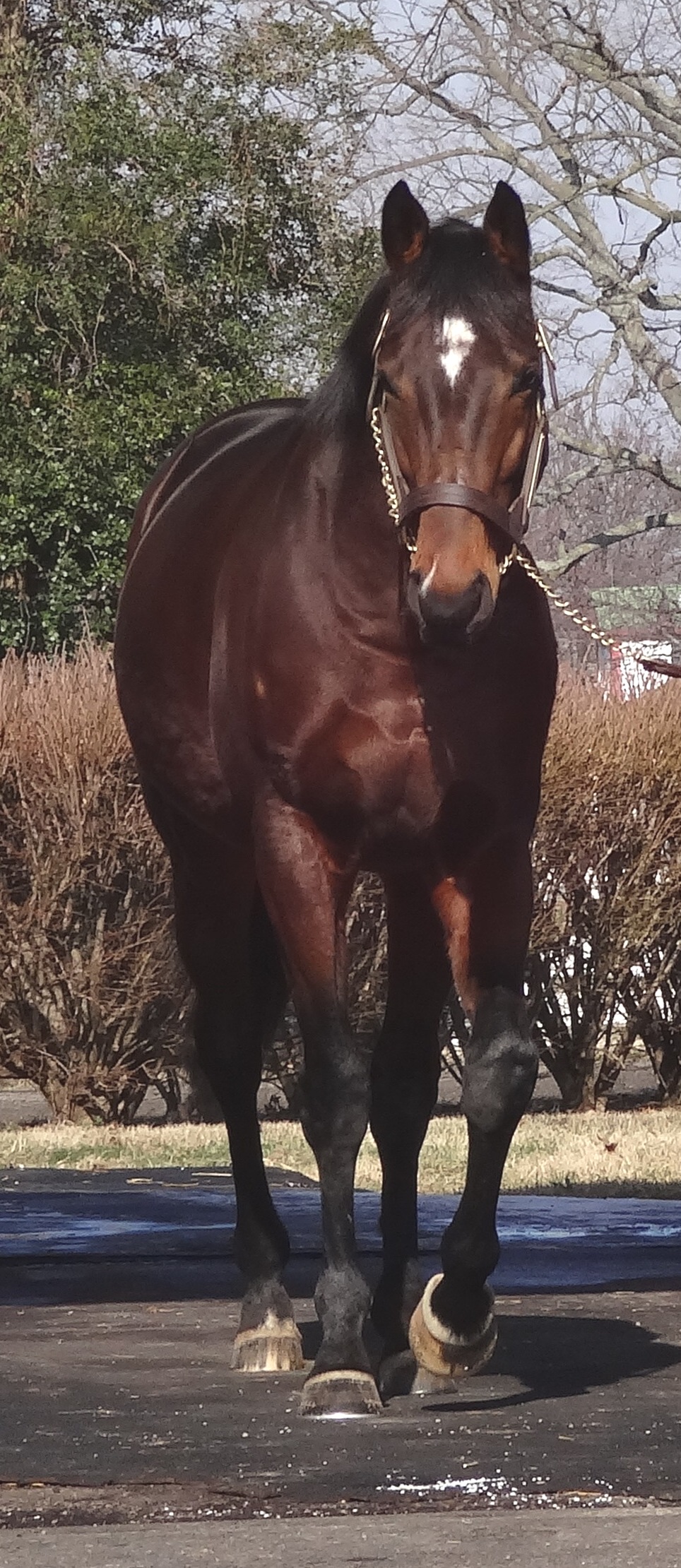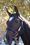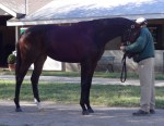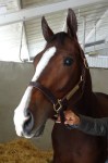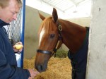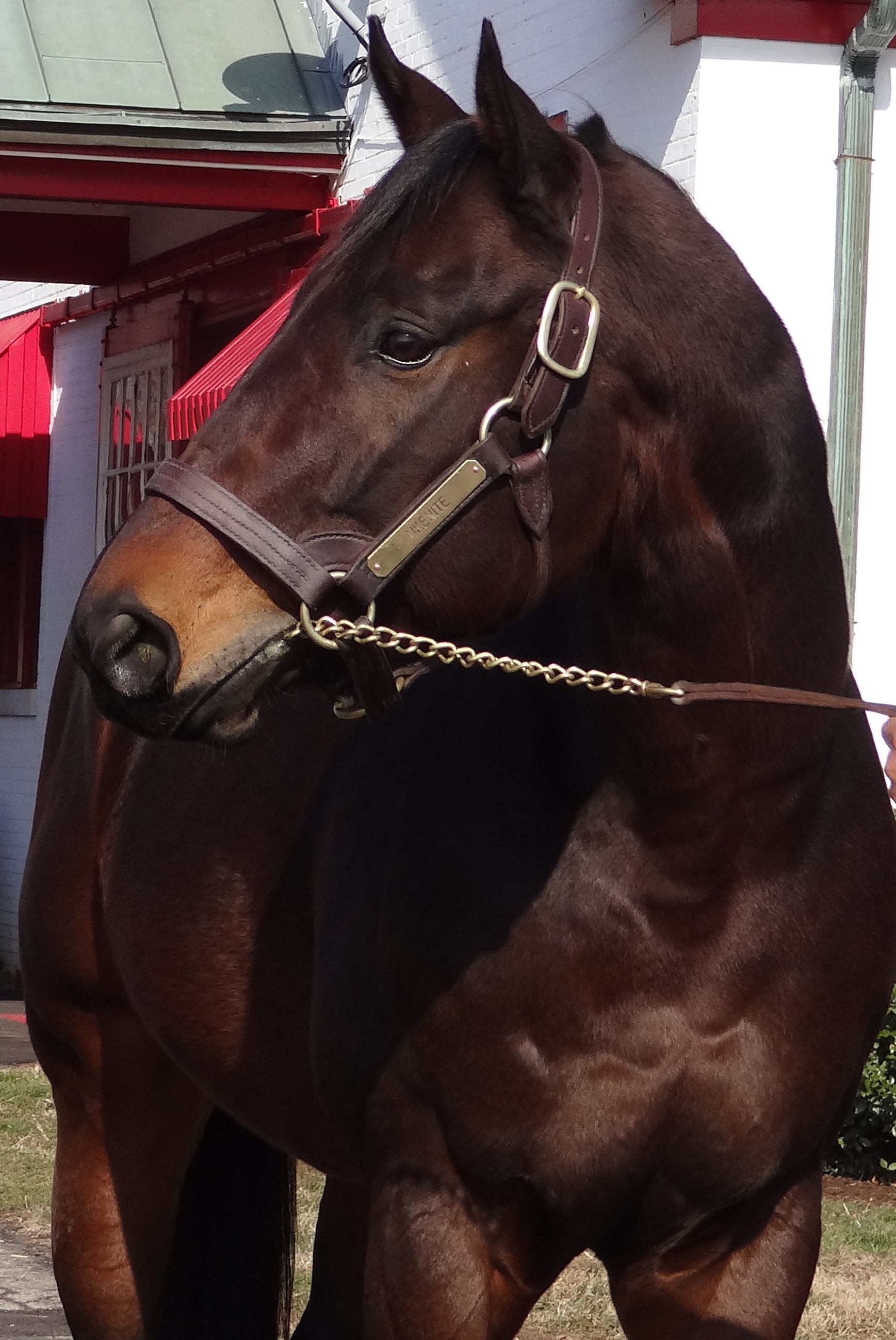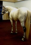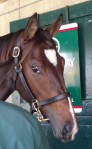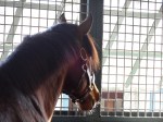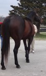 Through the entrance and to my left, Starformer – keyed up and ready to go – caught my eye: slender, muscular, a ball of energy bouncing along while being saddled at the walk.