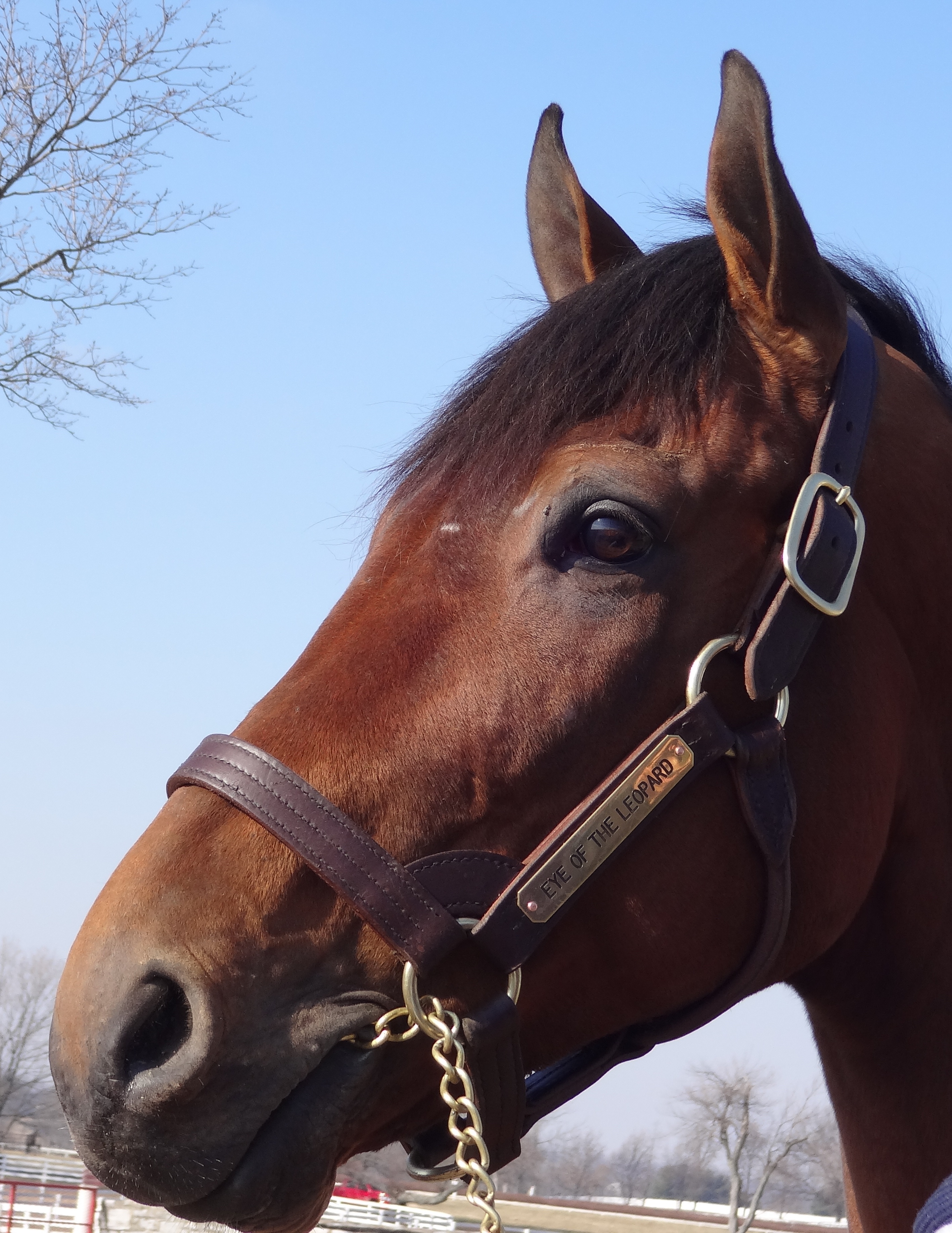 Next up, my other pick Tapitsfly—she of the regal bearing—entered the paddock for the First Lady Stakes. She first caught my eye at this same track months ago with a look over her withers, a perfect pose. It seemed to seek recognition of her ability and presence, a true star quality. A few weeks later, in the rapidly spreading darkness at the conclusion of Derby Day, she displayed the same unmistakable presence in a test barn at Churchill Downs. It was a quiet confidence, beauty, a far-off gaze over her hay net, reason to pause and take her in—a snapshot both for the memory and my camera.