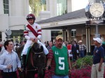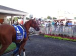 I remember when I was his age, and I was just beginning to really watch racing. I made lists of horses entered in races, and wrote down little tidbits of information the TV announcers passed along about them. I saw an echo of that thirst for information in my nephew his first day at the track: he pored over the program, announcing every horse’s name as they passed by. I told him a bit of how to decipher the other information entered for each horse, and was so proud when he was prescient enough to notice Rosie Napravnik entered in most races, before I’d even had a chance to tell him she is one of the best female jockeys ever, and a serious contender for top jockey of any gender. To learn it, discover it for himself, seemed the best tactic….