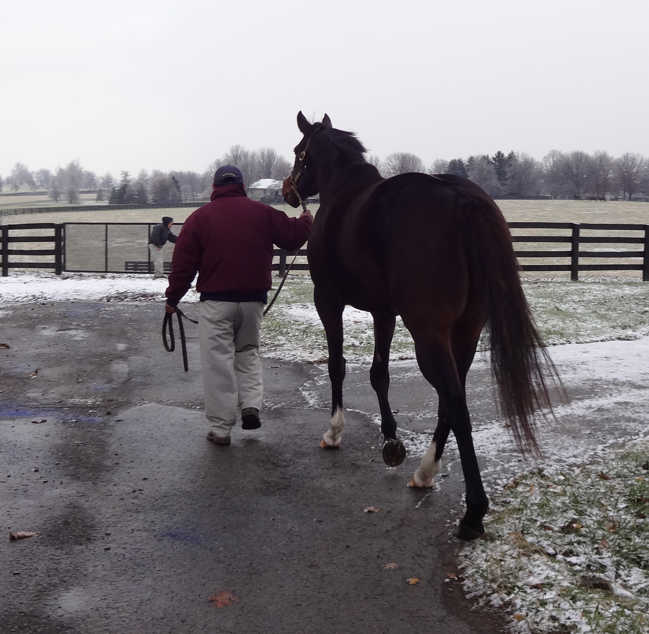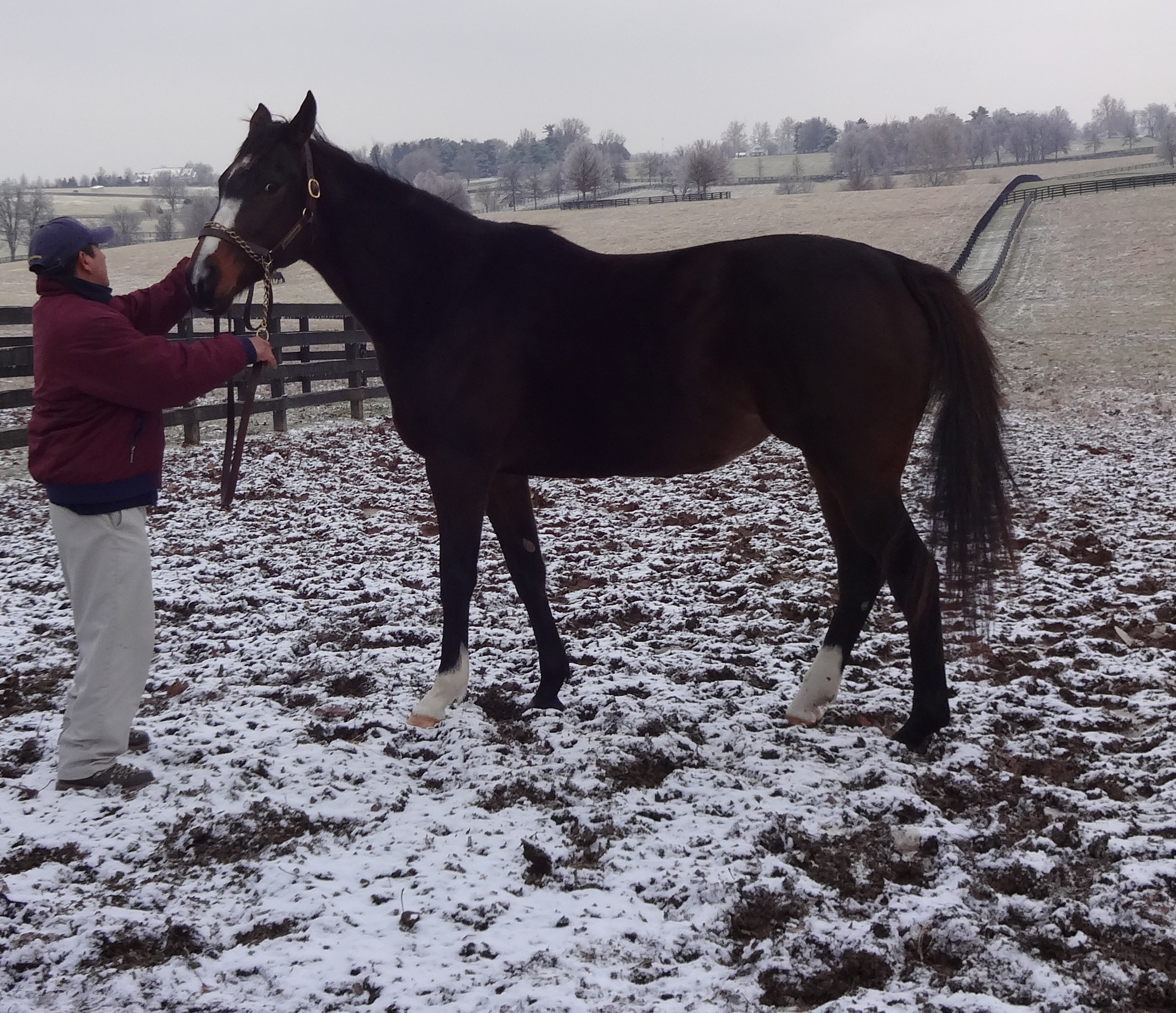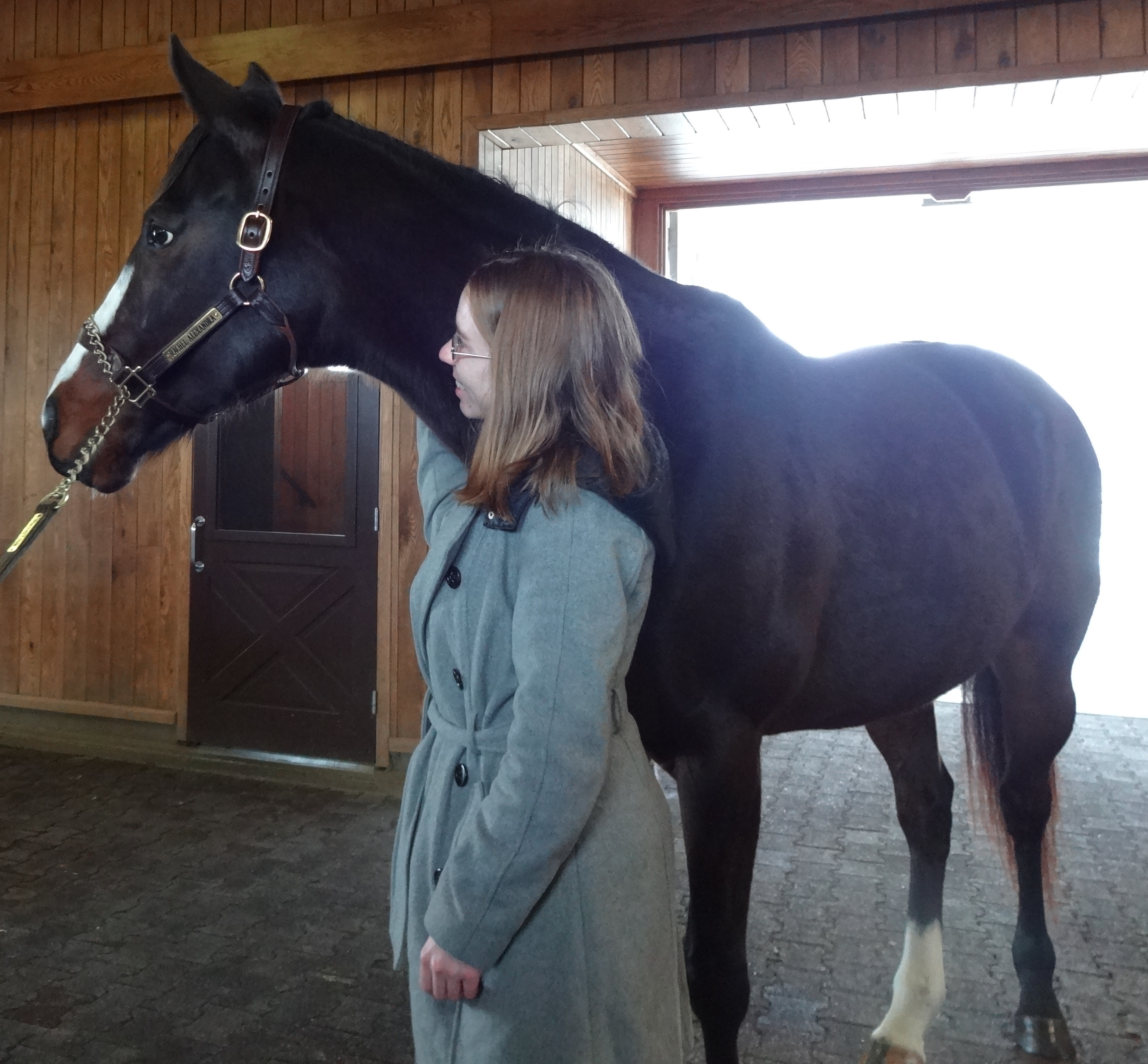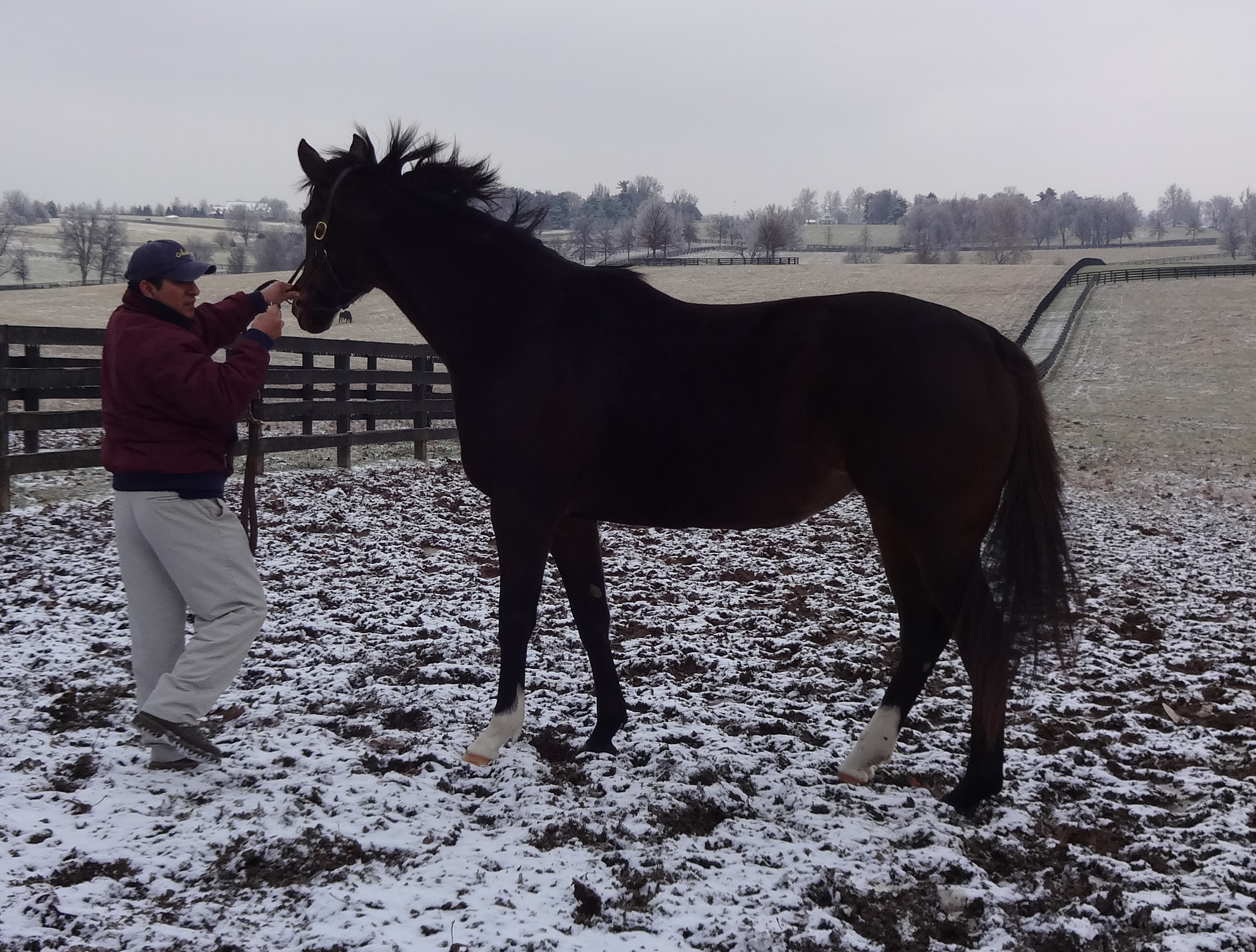 It was a frosty late morning in December as Rachel Alexandra stood calmly in the aisle of the Cabernet barn at Stonestreet. She exuded presence and class, as always, and her coat was beginning to grow fuzzy and was soft to the touch. Usually I am a picture-taking fanatic, but lighting aside, something about this occasion made me put my camera aside for the most part and just watch her. I am awestruck at her presence with each visit, but this time felt even more special. It was the first time I had seen her since her health problems earlier this year, and it was wonderful to see with my own eyes how vibrant and healthy she looks. Her signature white eye and distinctive blaze turned towards our admiring group from time to time, but mostly she looked to the doorway.