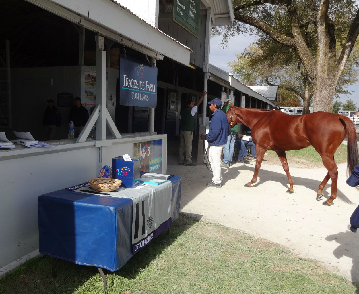 At the time I went through the Keeneland barns that sunny October day in 2011, it was to get another glimpse of the retired Brass Hat. I had followed the hugely popular gelding on the Kentucky circuit for some time, including one memorable day when he won a stakes race and was taken into the Keeneland winners’ circle on the turf, reserved for stakes winners, and then into the regular winners’ circle too. It was an impromptu occurrence due to his immense popularity. Calvin Borel was even boosted back aboard bareback for fans to get more photos.