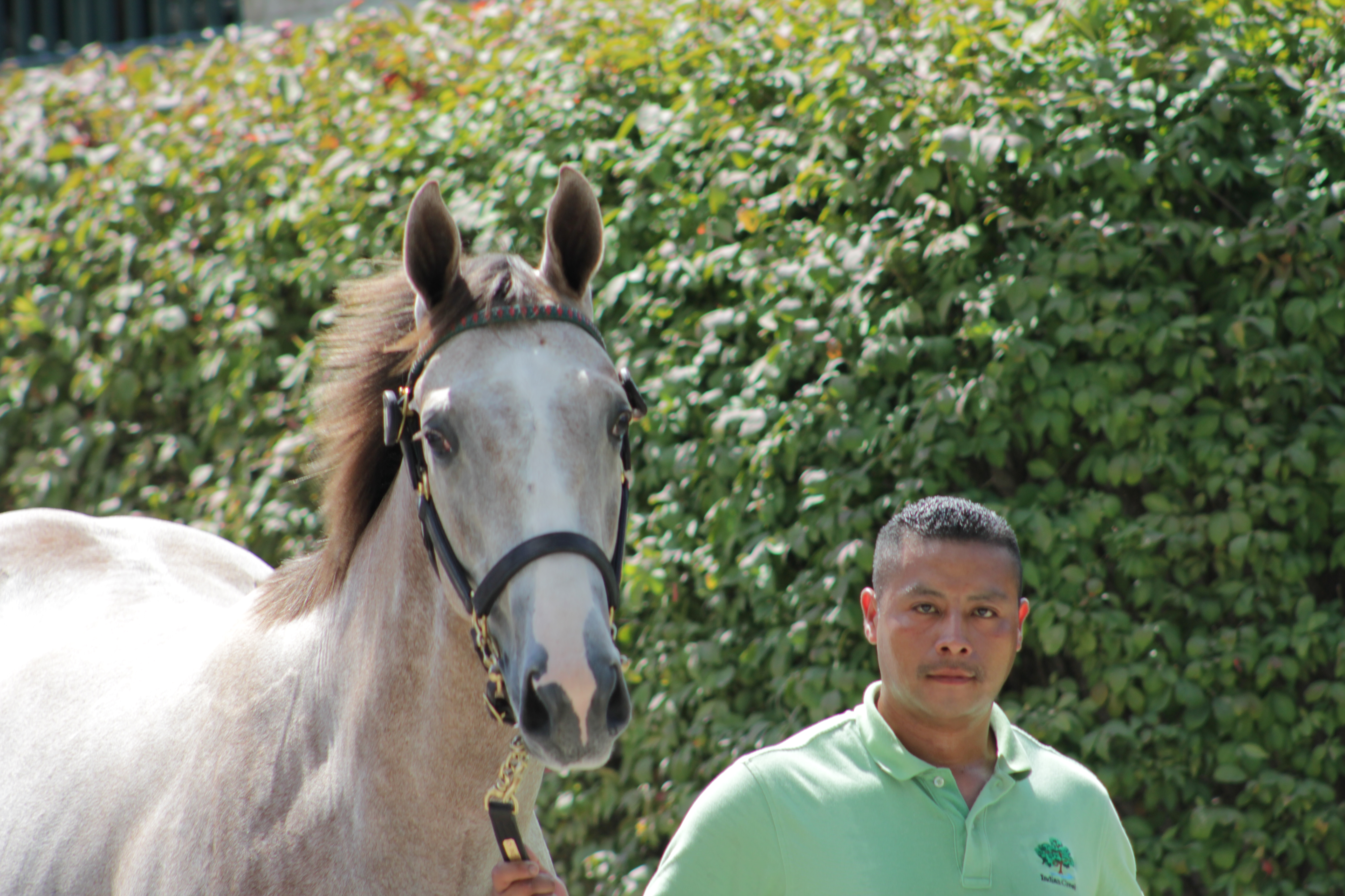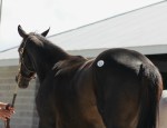 I was curious to see the first Frankels offered at auction in North America and how they’d be received. As some of the daily publications available at the sale mentioned, it would remain to be seen how U.S. Bidders would value a horse who strictly raced in Europe, but this is an international sale and Frankel’s greatness can transcend boundaries. I am still an amateur at evaluating conformation and maybe it is just the photographer in me who is drawn in by class and how even untested Thoroughbreds such as these yearlings present themselves, but I was impressed by this grey Frankel colt out of Rose of Summer, the dam of Laragh and Summer Front. And he certainly has a chance to shine on the track, with a sire such as Frankel and a dam that has produced the above-named runners, both winners of multiple graded stakes races, including G1’s. It is interesting too to note that while Rose of Summer has been bred to U.S.-based sires, she too has a European background as her sire El Prado was foaled in Ireland and is by the incomparable Sadler’s Wells. So there is a mix of European and American bloodlines in this colt, but it still slants towards European even on the dam’s side. Did I mention I’m a bit of a pedigree “geek”? It’s just always been an intriguing study to me almost from the time I first started following racing.