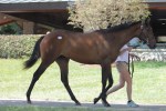 The Frankel colt mentioned earlier in this post leaves the ring after selling for $800,000, the highest price for the 5 Frankel yearlings offered in the sale, no doubt helped greatly by his dam’s produce record.