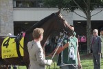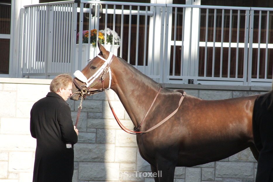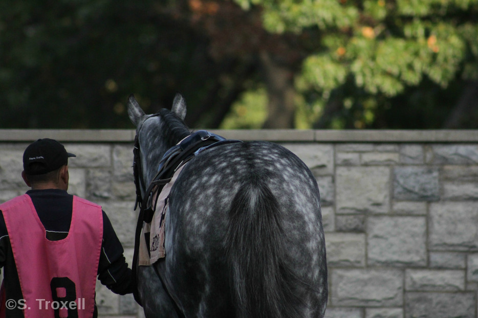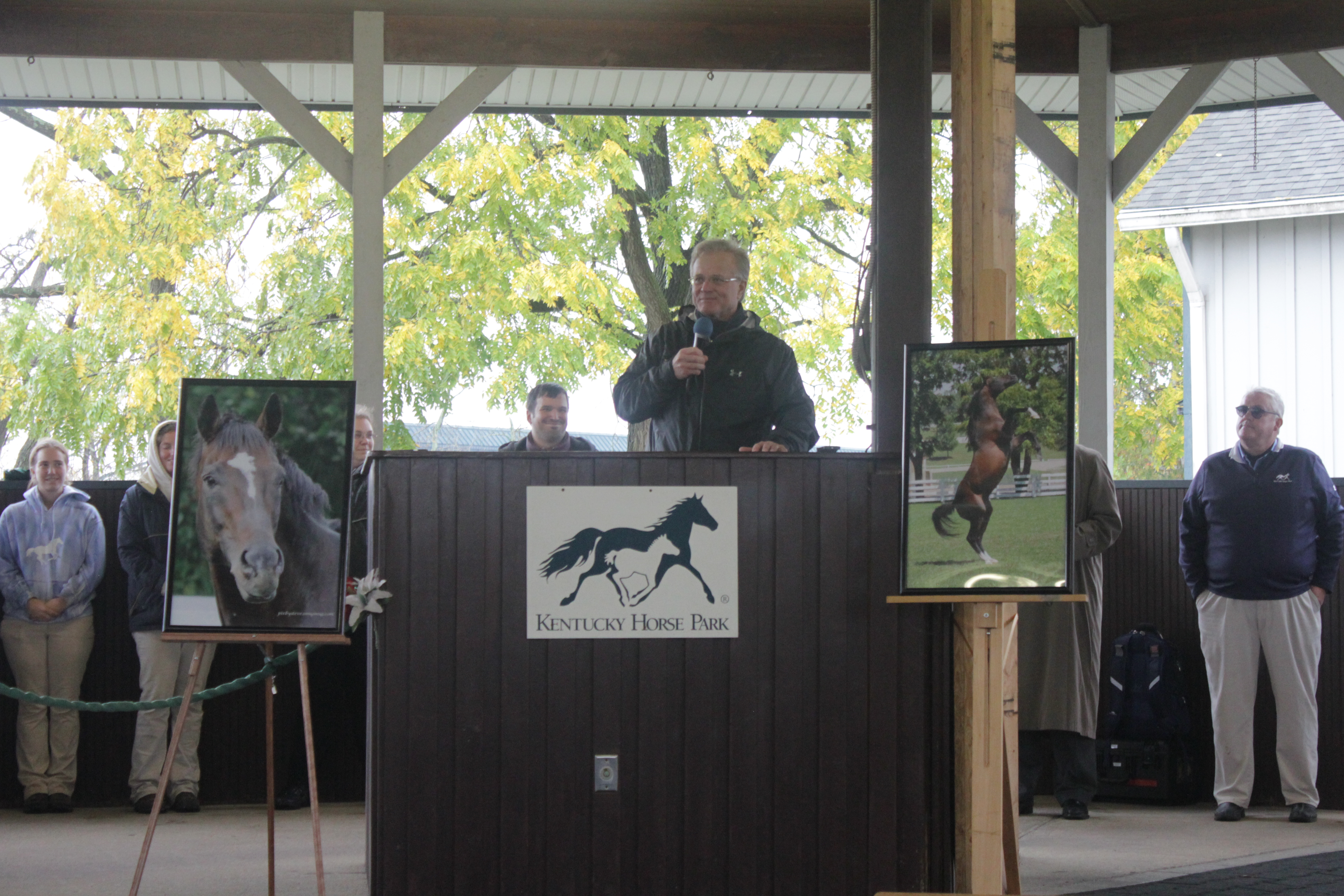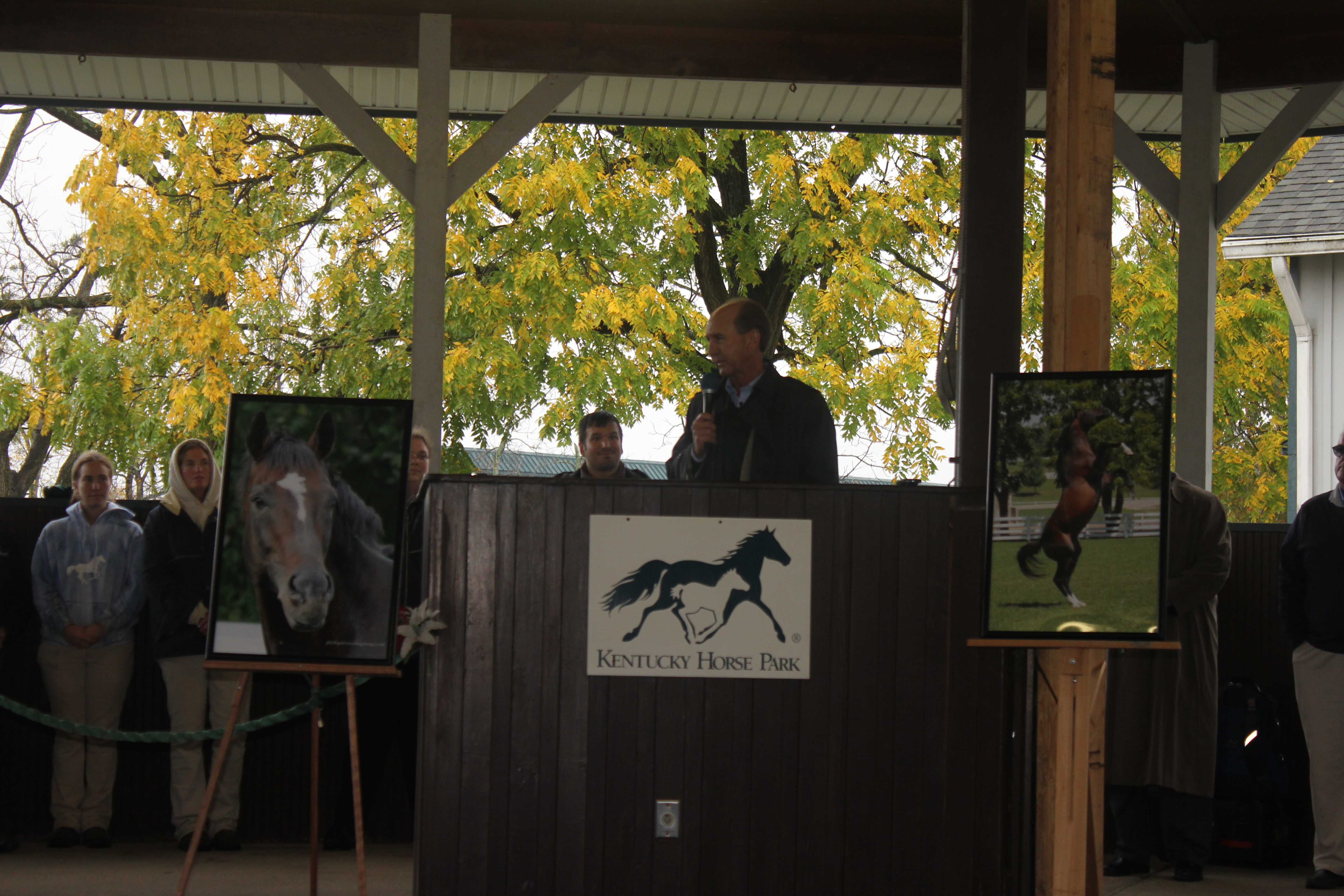 Cigar’s Hall of Fame trainer Bill Mott spoke briefly, after joking about how they managed to get him to speak after all. He was framed by a background of golden leaves and flanked by two incredible photographs of Cigar set on easels on either side of a podium. Cigar’s spirit shone through so brightly in those photos, just as brightly as he shone in the memories of Mott, jockey Jerry Bailey, the Horse Park staff, and the assembled fans.