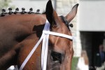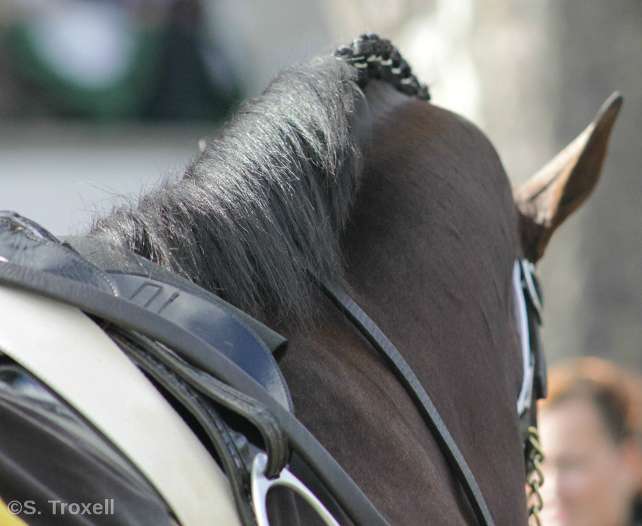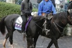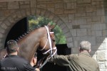 - One of the Budweiser Clydesdales, on the grounds to appear at the National Horse Show, joins the celebration of Cigar’s life