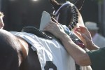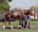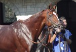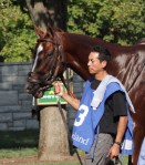 Kitten’s Joy, on his first full day at Hill n Dale; he was still getting used to being around other stallions after usually being the only one present at Ramsey Farm