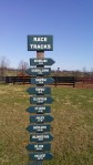 Before going out to meet some of the horses, we took in a few of the sights around the farm. Two things that especially stood out were seeing the Keeneland grandstand from the farm, and the sign post showing the distance to various notable racetracks.