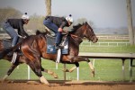 - Marconi, Mucho Macho Man’s half brother, on the way to the paddock for the Blue Grass Stakes