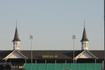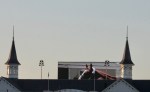 - Justify on the big screen, framed by the twin spires, as he prepared to go to the track the Tuesday of Derby week