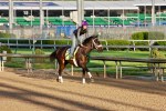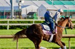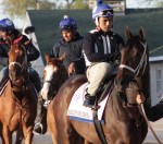 - Calvin Borel leaves the track aboard Heavenhasmynikki after the special training session for Oaks and Derby contenders