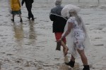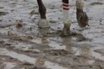- The track conditions were so muddy several people made the walkover barefoot throughout the day