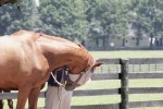 Seventeen-year-old Brass Hat, Breyerfest’s Celebration Horse this year, was another nice mover as he appeared in the arena each day before attendees, and he appeared to love the attention from people who congregated at his stall to get acquainted.