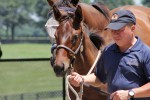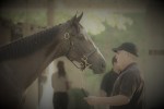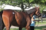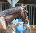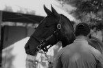 Later, Napravnik rode in a preview of the Thoroughbred Makeover that will take place this fall at the Horse Park, a preview that Cozmic One also participated in. I spoke to his young rider in charge of his progression for the Makeover. She said he hated racing but has taken well to show jumping. I followed him only sporadically, and standing next to him was a bit of a revelation, as I had either not realized or had forgotten he had inherited Zenyatta’s height, standing at 17 hands or a shade taller. He was a little antsy in his stall but once outside of it revealed a calm demeanor and seemed to take everything in stride. He is a nice mover, reminding me of how a lot of foundation work was put into him to get him to even be able to be tractable to be trained for racing. He is in good hands to go on to the next phase of his working life.
