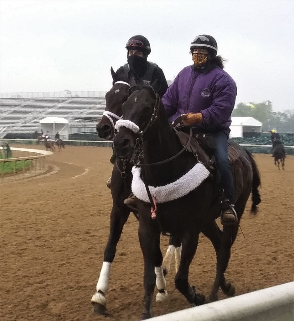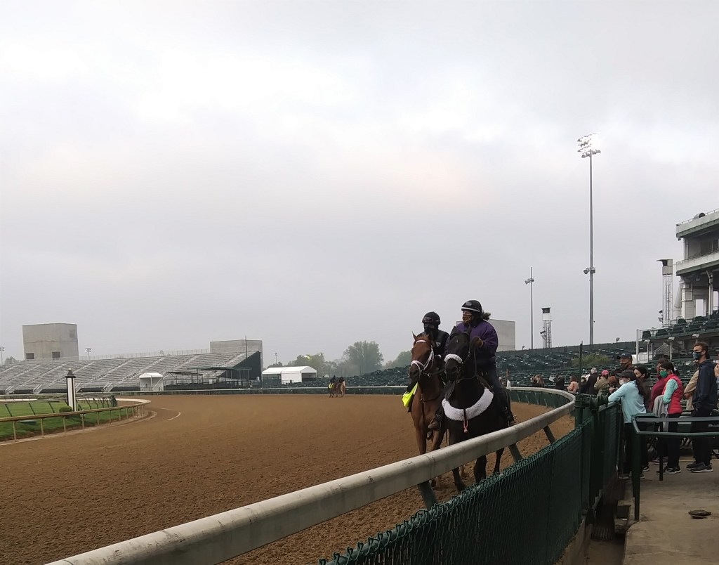 I had also hoped to see Monomoy Girl, who had shipped to Churchill Downs shortly after her Apple Blossom run, and she had made an appearance over the Churchill surface two days before. There was a horse that strongly seemed to resemble her that galloped by the grandstand twice, yet I only had the profile to go by as that horse never turned his or her face my way. Just as with being eager to buy into the lease offering for her, I was eager to see her for the first time since buying in and after attendance at all her races last year was not possible. The horse I thought was likely her was too difficult to definitively identify without ever getting a look at his or her face, but all I can say is MyRacehorse later sent out an update she did gallop this morning at Churchill, and the horse I thought was her had the right saddlecloth and seemed to have the right build to match Monomoy Girl’s. So while I don’t know for sure that was her, there’s a good chance that was. So my Derby week goals of getting more photos of everything related to Authentic’s Derby win that will give way soon to a new Derby winner and seeing the Oaks and Derby contenders train and probably even seeing Monomoy Girl were all achieved. I will still tune into the race from home, but I look forward to how it all unfolds and next year being more aligned with Derby attendance being possible. We’re getting closer to not having to curtail much of what we do and it makes any other restrictions still in place a little easier.