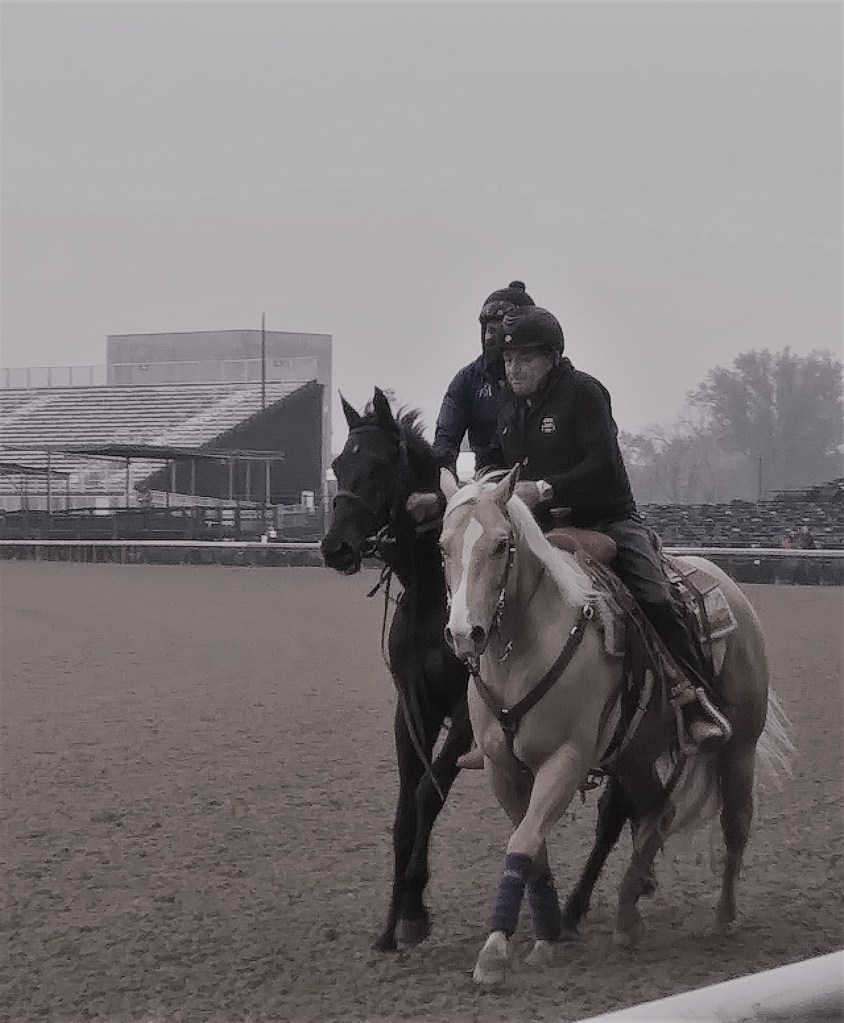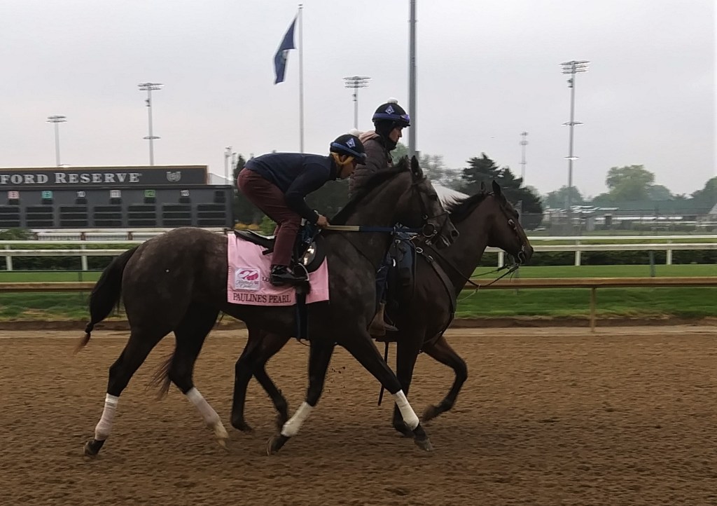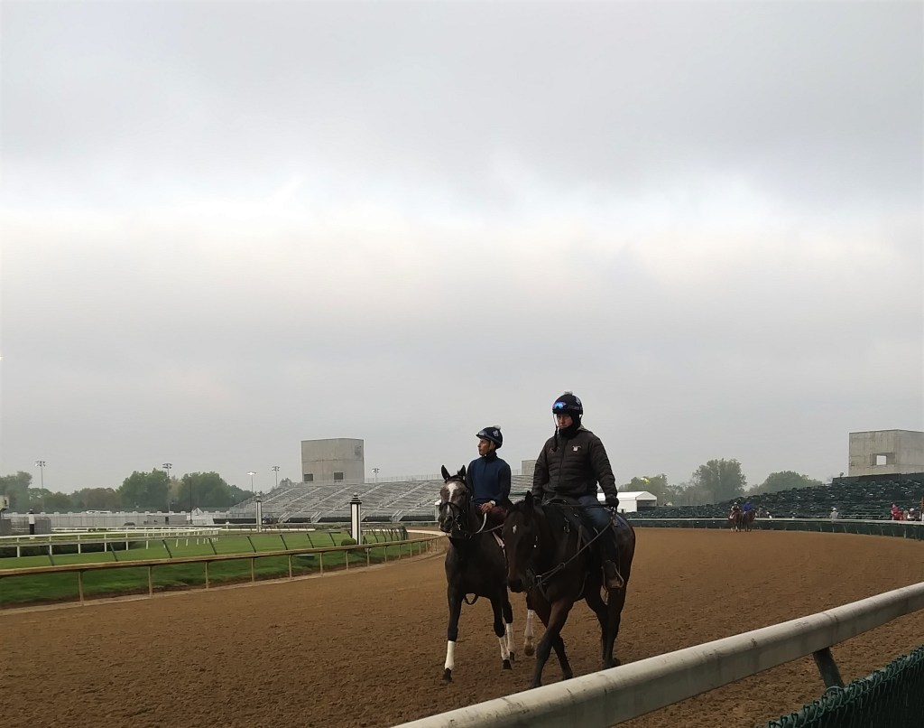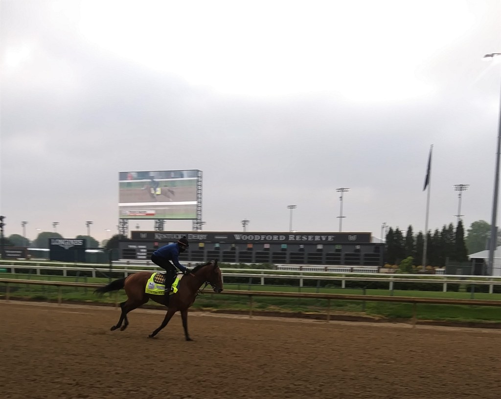 Given the weather may have been iffy, quite a few of the contenders put in their final works the day before, and that meant only a handful of Derby horses made appearances during and right after the designated training time for them. The bulk of them during that time were, then, Oaks horses.