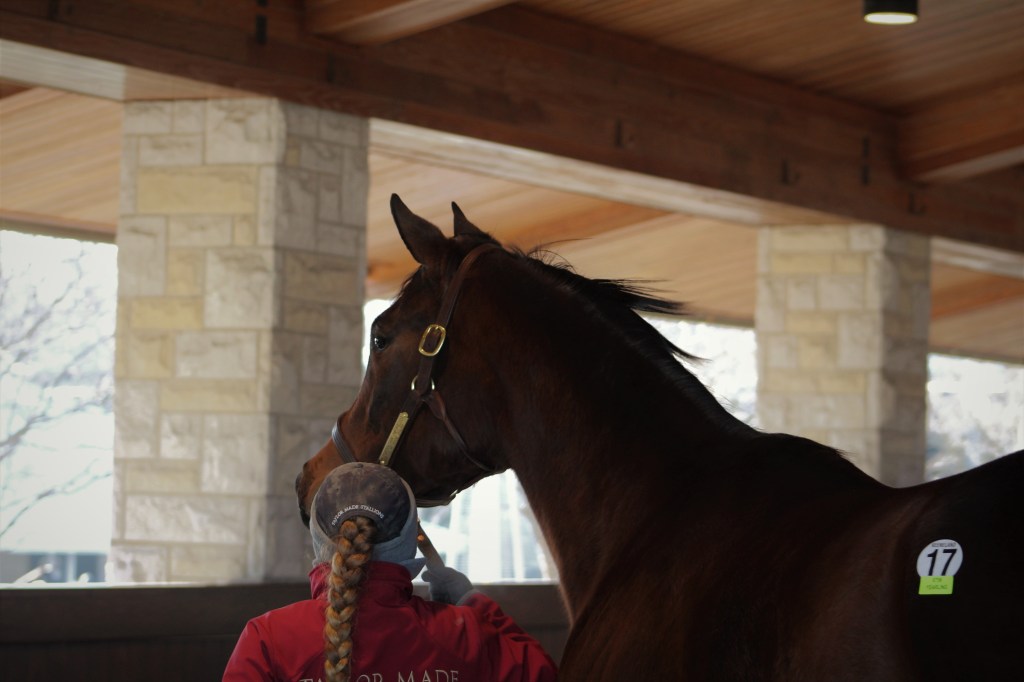 I saw her once more at two, when she had begun initial training on the track. It didn’t work out to attend any of her races, so my next chance to interact with her was at this sale.