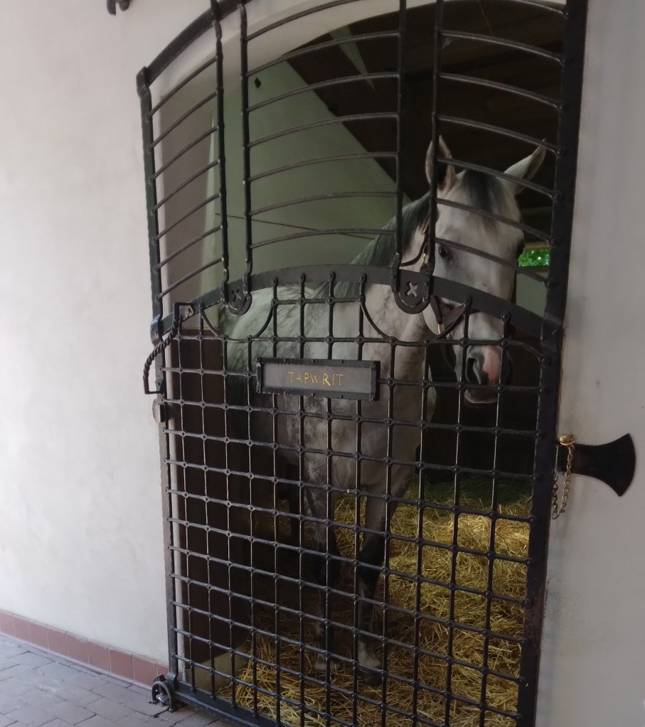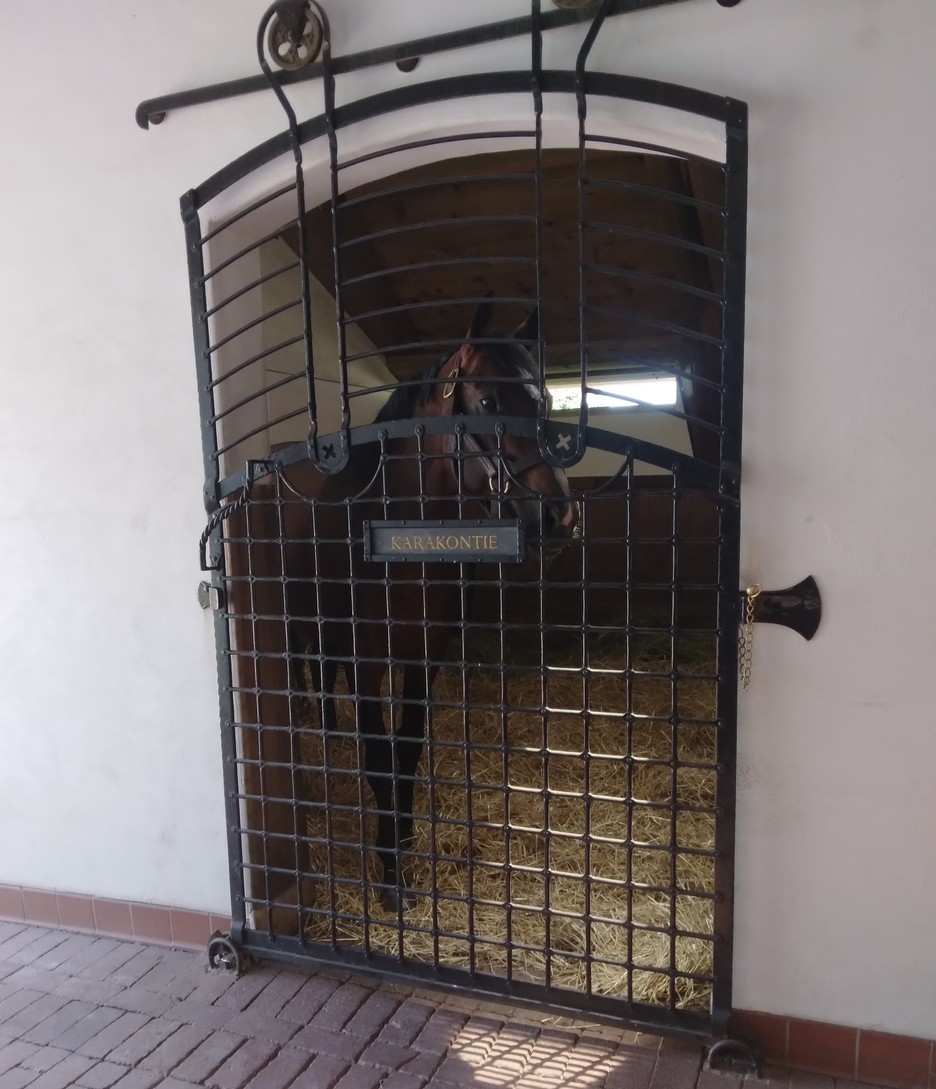 After seeing those stallions outside, the guide took us through the breeding shed and the barns to see a few other stallions. I was glad to see Afleet Alex again, who was pensioned from breeding this year and is now living the easy life. He will stay at Gainesway for the rest of his days. While he was not the most commercial stallion his whole life, I am still glad he stayed in Kentucky and at one farm. The guide talked about what a good-natured horse he is; that and the way he snatched victory from what seemed like near-certain defeat in the Preakness have always made him stand out to me.