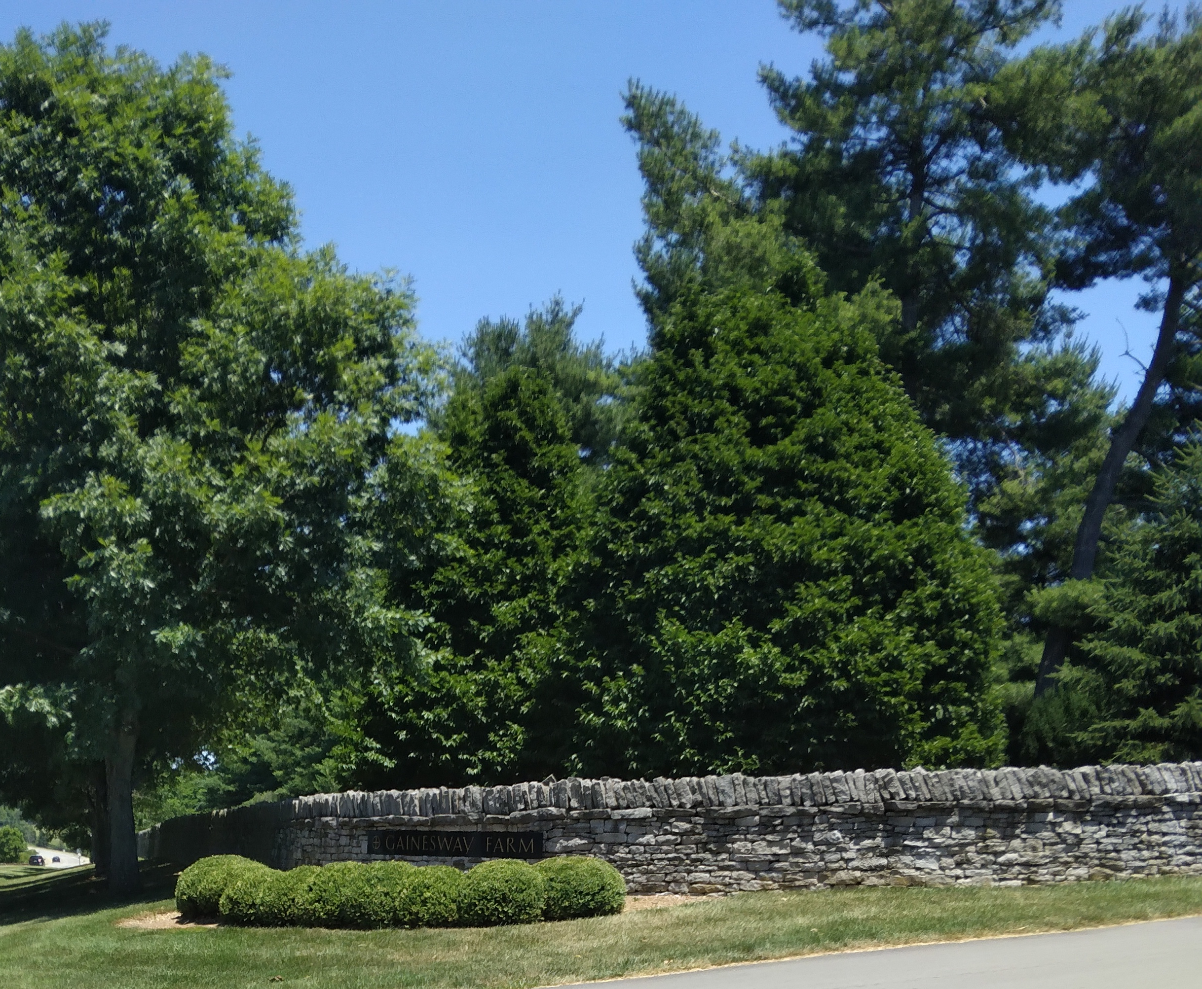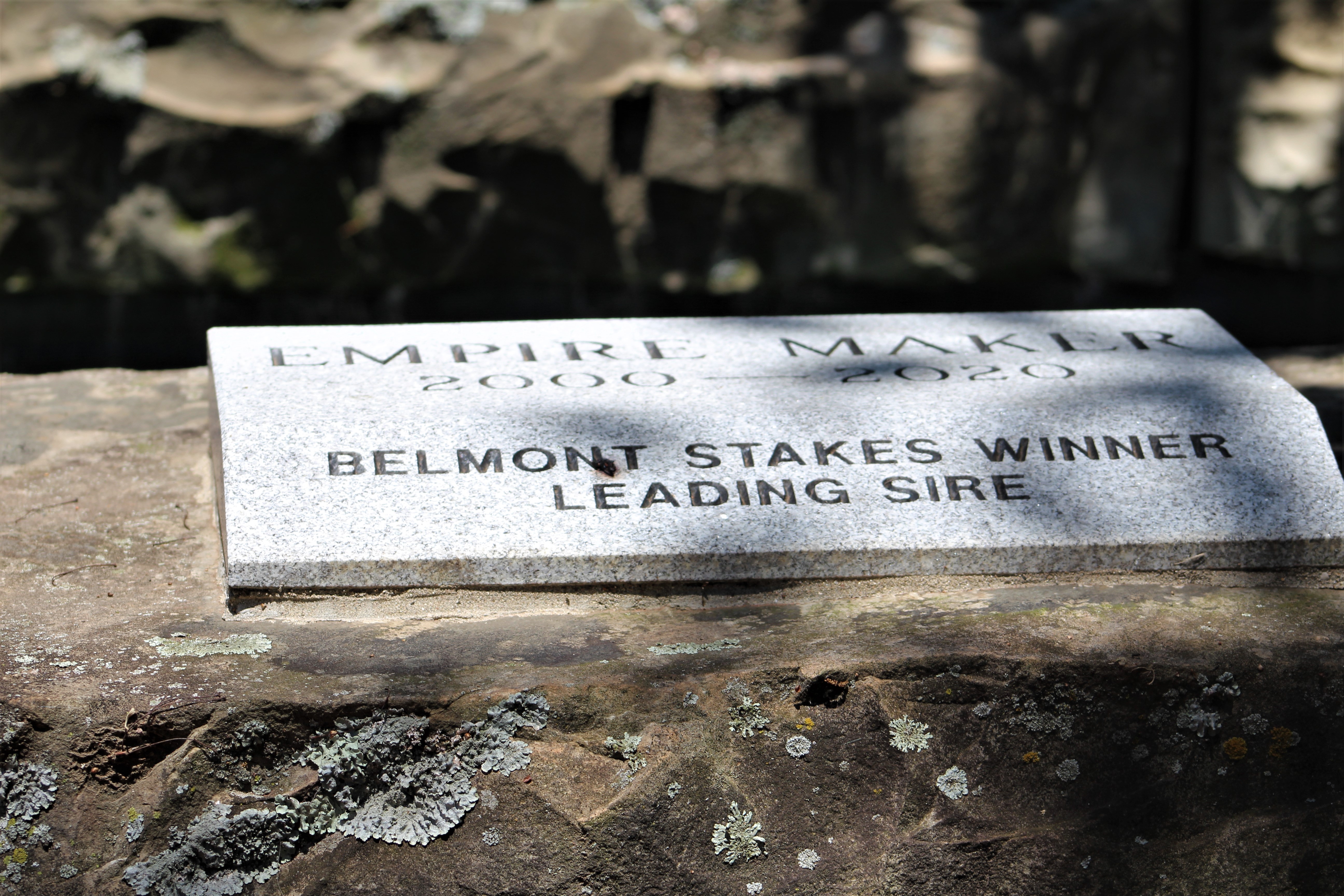 It was an idyllic day to visit Gainesway, and see most of their six active stallions. All was quiet and peaceful, as the stallions begin to settle into the lull between breeding seasons. I noted the fairly new stone placed by the fountain to honor Empire Maker, one of my favorite racehorses.