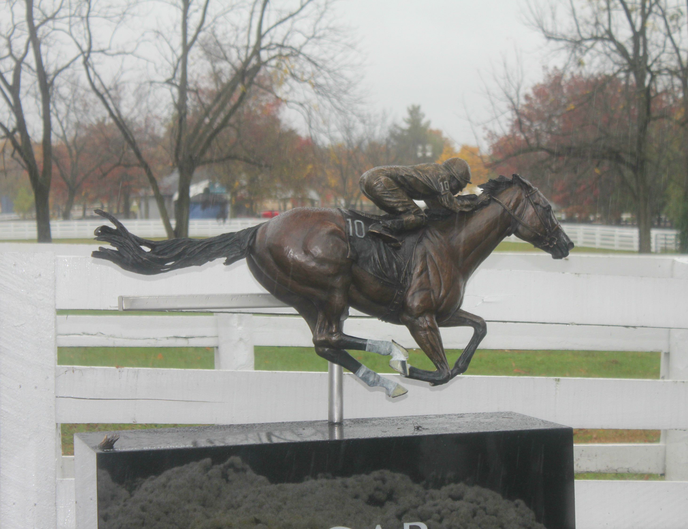 28 Wednesday Oct 2015 Original size at 2925 × 2252 ≈ Leave a comment A better look at the statue; incredibly evocative of Cigar. My first thought was “It is him.” What a tremendous statue Blumberg has crafted in Cigar’s honor.